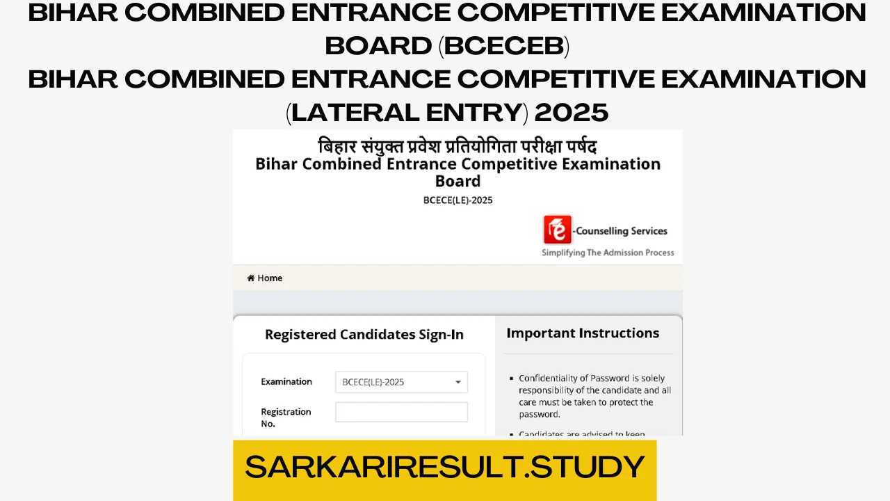 Bihar Combined Entrance Competitive Examination Board (BCECEB)Bihar Combined Entrance Competitive Examination (Lateral Entry) 2025 |