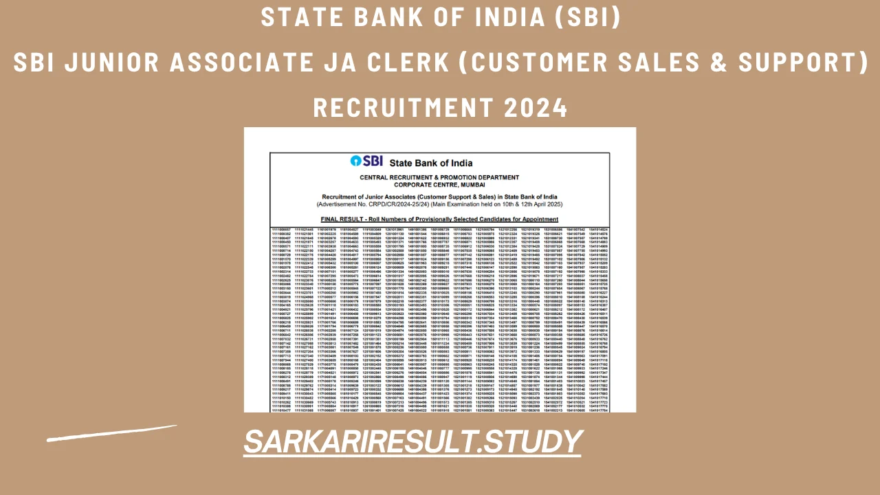 State Bank of India (SBI)SBI Junior Associate JA Clerk (Customer Sales & Support) Recruitment 2024Advt No. : CRPD/CR/2024-25/24 |