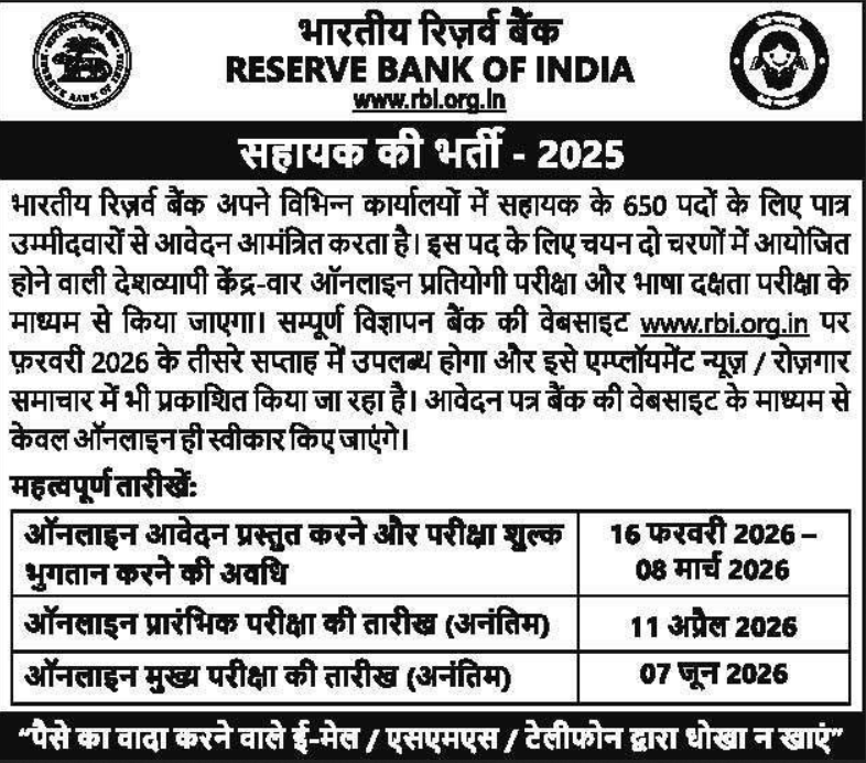 Reserve Bank Of India (RBI)RBI Assistant Recruitment 2026