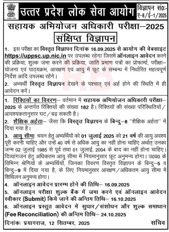 Uttar Pradesh Public Service Commission (UPPSC)UPPSC Assistant Prosecution Officer Recruitment 2025 |